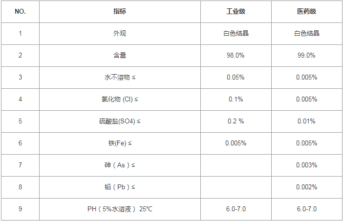 性 狀:白色單斜片狀晶體,具有珍珠光澤,微帶醋酸味味澀,可溶于水和乙醇,比重1.735在100℃下失去兩個結晶水。熔點 83-86°C,沸點117.1°C at 760 mmHg閃點 40°C,蒸汽壓13.9mmHg at 25°C